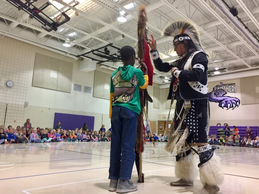 A Lakota man is celebrating three decades teaching life lessons to elementary school students through Native American dance. Dallas Chief Eagle started working as an artist-in-residence for schools in the mid-1980s. Today he’s still sharing Lakota culture with school children across the state.