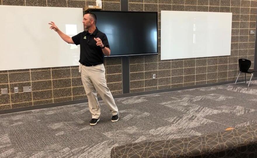 Dan Conrad is the principal. He says the layout provides space for open discussions.