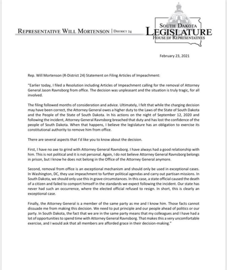 A spokesperson for Ravnsborg says he has no plans to step down from his position and will wait for the case against him to proceed.