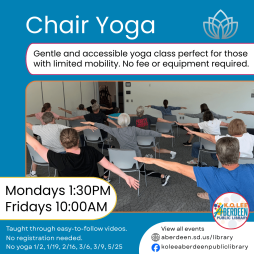 Reach beyond books and join us at the library for this gentle and accessible yoga class that is perfect for those with limited mobility.Class is taught through easy to follow videos. No fee or equipment required!