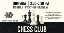 What is a rook and what does it have to do with a queen? Join the Chess Club at the Sturgis Public Library on Thursday, February 26th from 3:30-5:30pm. All ages and abilities are welcome. From learning the basics to mastering strategy, participants will play friendly matches and develop focus, logic, and patience.