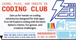 Join the Sturgis Public Library on Wednesday, February 11th at 3:30pm for hands-on coding activities and programs, designed for ages 6-10