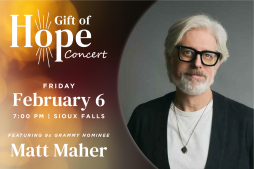 Join us for the 26th Annual Gift of Hope Concert, featuring Christian singer/songwriter Matt Maher, on Friday, Feb. 6 at 7 p.m. at St. Michael Church in Sioux Falls.
