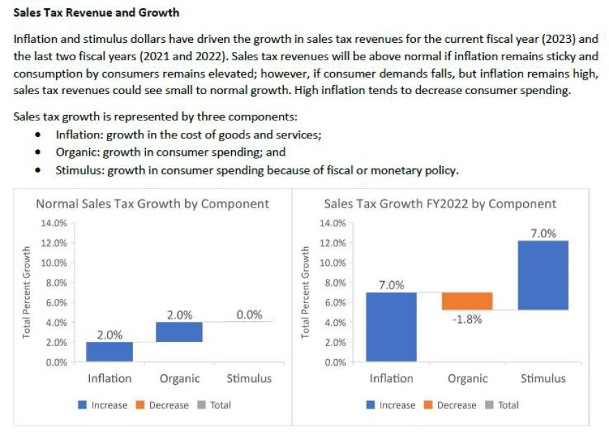 A report from a group that assists the state legislature shows the state’s economic growth is driven by inflation and federal stimulus dollars.