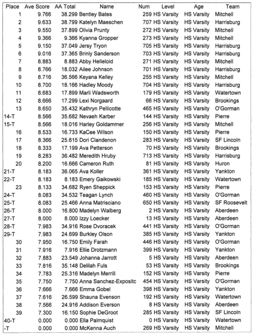 The individual section of the 2024 state gymnastics championships took place on Saturday February 10th from Pierre TF Riggs high school.