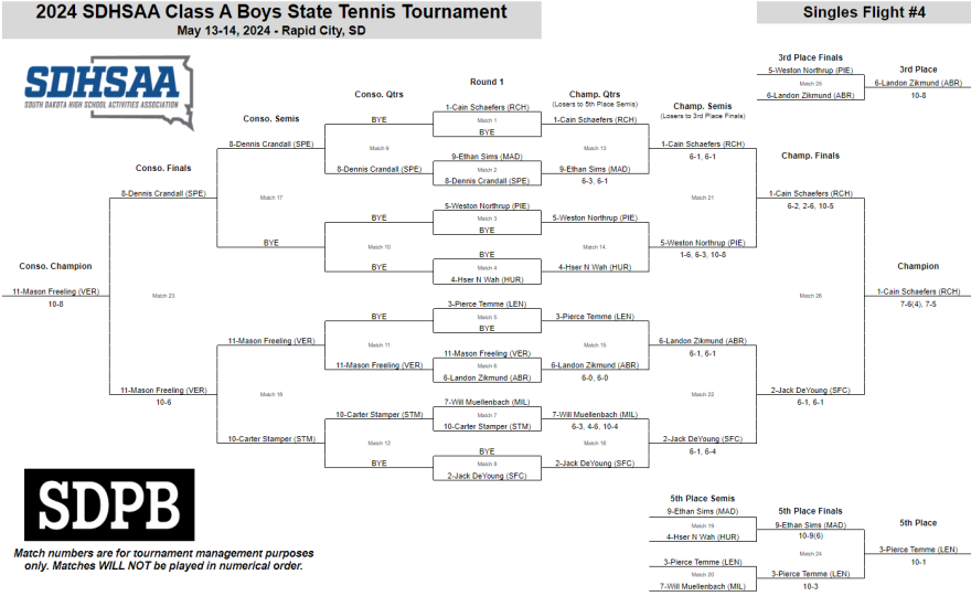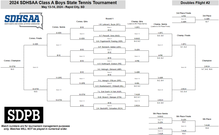 The 2024 SDHSAA 'A' boys state tennis tournament concluded on Tuesday from Rapid City. Sioux Falls Christian won the team title in a close battle with Rapid City Christian.